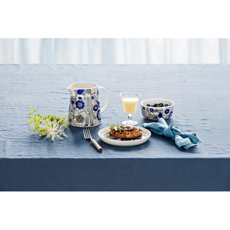 Porcelánový džbán z klasickej kolekcie Pastoraali, ktorú navrhla dlhoročná dizajnérka fínskej porcelánky Arabia Esteri Tomula. Čiernobiele ilustrácie s kontrastnými modrými prvkami sú plné detailov. Jednoducho nadčasový porcelán, ktorý vám bude robiť radosť každý deň. Džbán môžete použiť nielen na servírovanie, ale aj ako krásnu vázu.