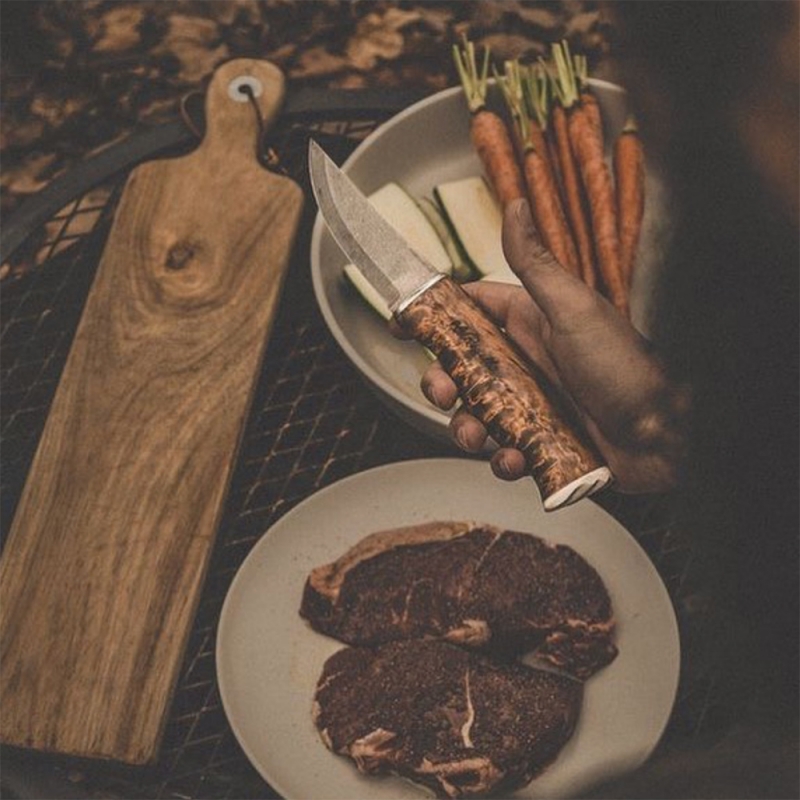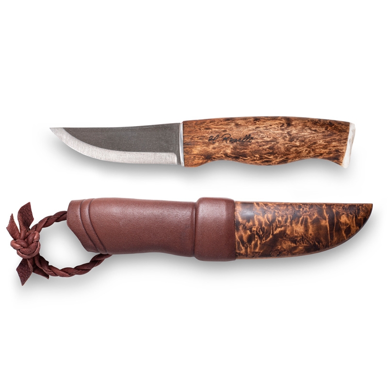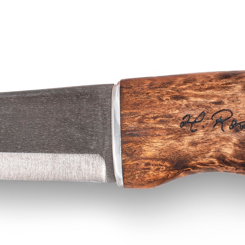 Nôž sa vyrába ručne z fínskych materiálov, ktorým dominuje špeciálne vyvinutá tvrdá karbónová oceľ Roselli UHC z fínskej oceliarne Karhula. Extrémna tvrdosť dáva nožu skvelé vlastnosti a dlhotrvajúcu ostrosť. Tepelne upravená brezová rukoväť ošetrená ľanovým olejom sa dobre drží aj keď je vlhká. Nôž je nenahraditeľný pomocník pri vašich výletoch do prírody a bude nádherným originálnym darčekom, ktorý poteší všetkých dobrodruhov.
