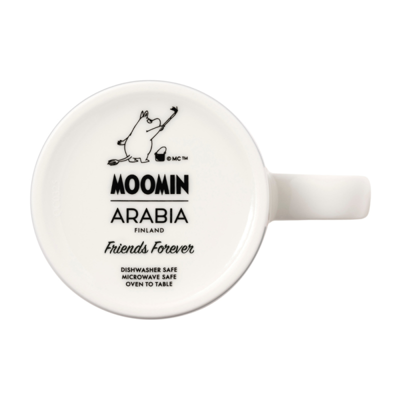 Milý porcelánový hrnček z kolekcie Friends forever na motívy príbehov s Muminkami od slávnej fínskej autorky Tove Jansson. Muminek a Snufkin sú priatelia navždy a môžu sa na seba vzájomne spoľahnúť vždy, keď je to potrebné.