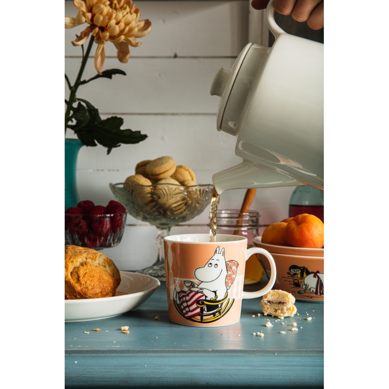Krásny hrnček Moominmamma v novom odtieni marmalade nesie milý motív láskavej mamičky Muminkov, ktorá sa stará o záhradu, odpočíva vo svojom hojdacom kresle a popíja kávu. Hrnček je originálnym darčekom pre deti, určite ale poteší aj dospelých milovníkov Muminkov, ktorí si radi pripomenú chvíle strávené nad rozprávkovými knihami.