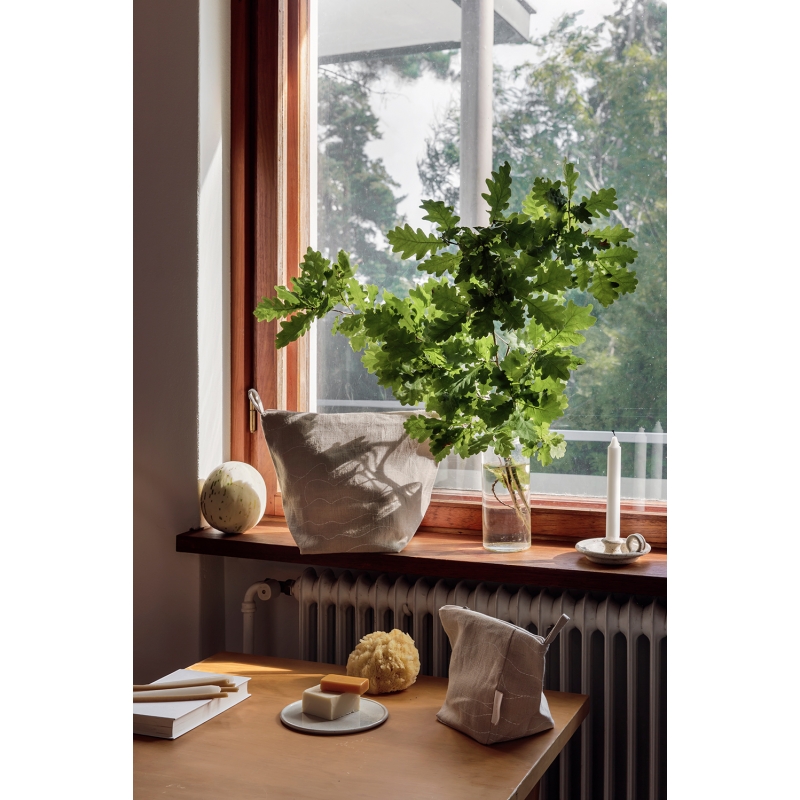 Kozmetická taštička Rakkauden meri (more lásky) z prvotriedneho konopného vlákna má zapínanie na zips a zmestí sa vám do nej všetko potrebné. Vezmite ju so sebou na cesty alebo si do nej uložte kozmetiku v kúpeľni.