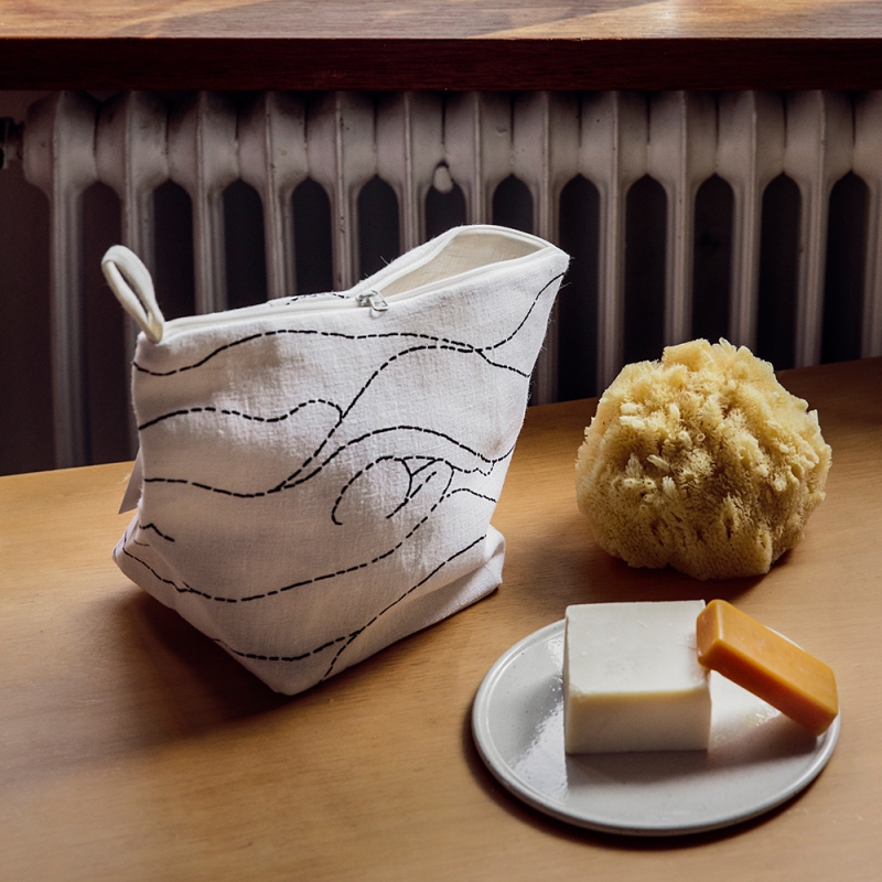 Kozmetická taštička Rakkauden meri (more lásky) z prvotriedneho konopného vlákna má zapínanie na zips a zmestí sa vám do nej všetko potrebné. Vezmite ju so sebou na cesty alebo si do nej uložte kozmetiku v kúpeľni.