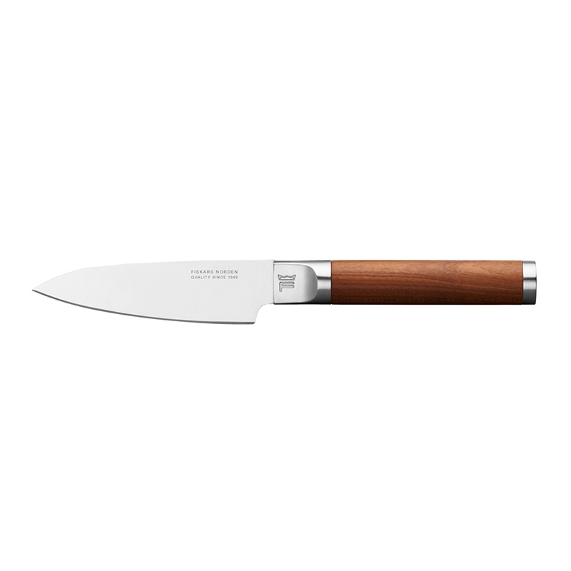 Krátky univerzálny nôž z kolekcie Norden si vás získa prvotriednou kvalitou karbónovej čepele a krásnou drevenou rukoväťou z fínskej brezy. Všestranný nôž na krájanie, čistenie a okrajovanie je nenahraditeľný pomocník pri varení a poteší každého nadšeného kuchára či kuchárku. Balené v dizajnovej darčekovej krabici.