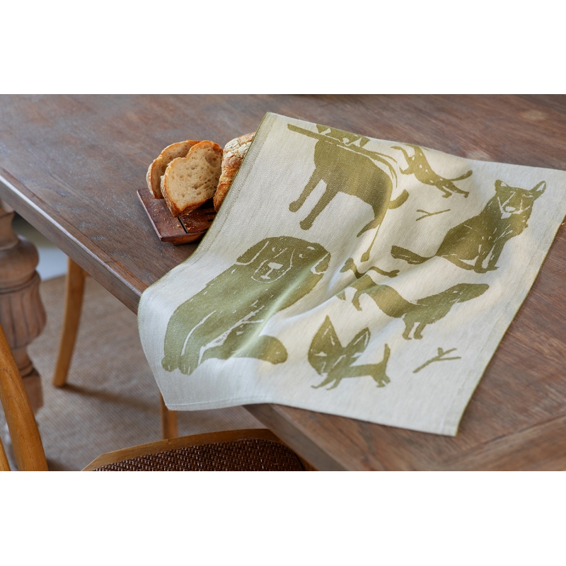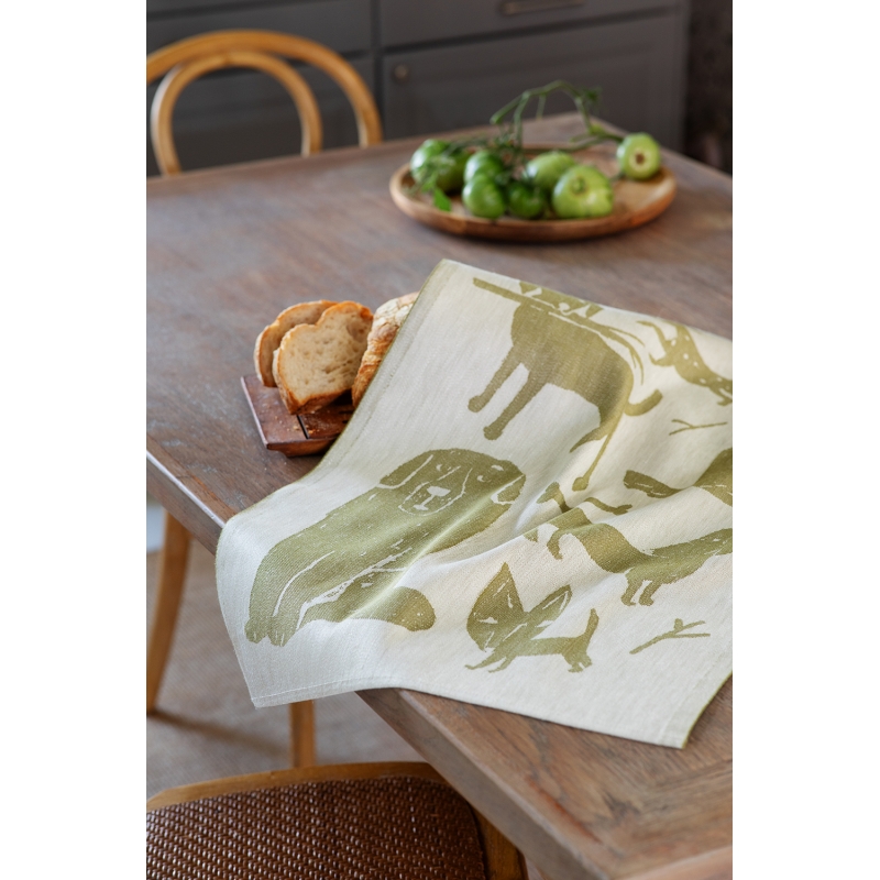 Utierka Koirapuisto s hravým motívom psov od fínskeho dizajnéra Mattiho Pikkujämsy. Z jednej strany je utierka tmavá so svetlou kresbou, na druhej strane je naopak podklad svetlý a kresba tmavá. Vďaka svojmu zloženiu z ľanu a biobavlny utierka výborne saje a je zároveň príjemná na dotyk.