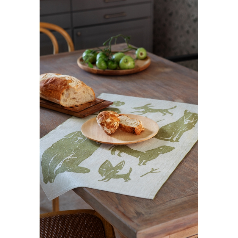 Ľanová utierka Koirapuisto 46x70, bielo-olivová