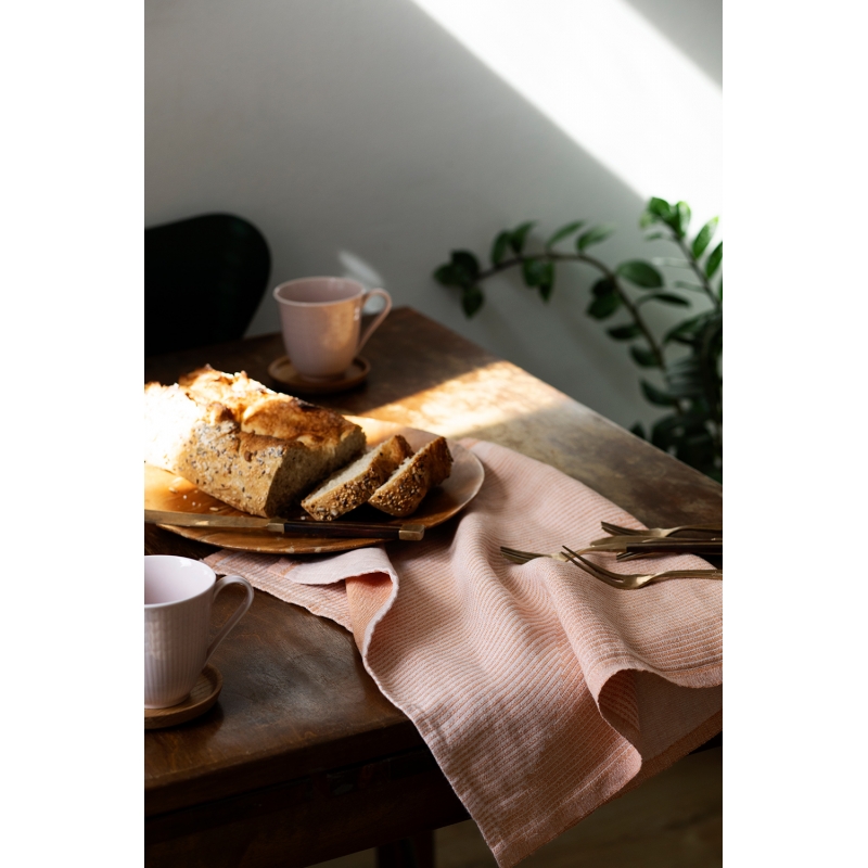 Nádherná kuchynská utierka Rinne tkaná zo 100% ľanu spája eleganciu s praktickosťou. Vzor Riine (fínsky svah) v zladenej kombinácii oranžovej a ružovej doladí vašu kuchynskú linku, či už ju dokonale vyžehlíte alebo ju necháte ležérne pokrčenú. Ľan rýchlo schne a je tak praktický na každodenné úlohy v kuchyni.