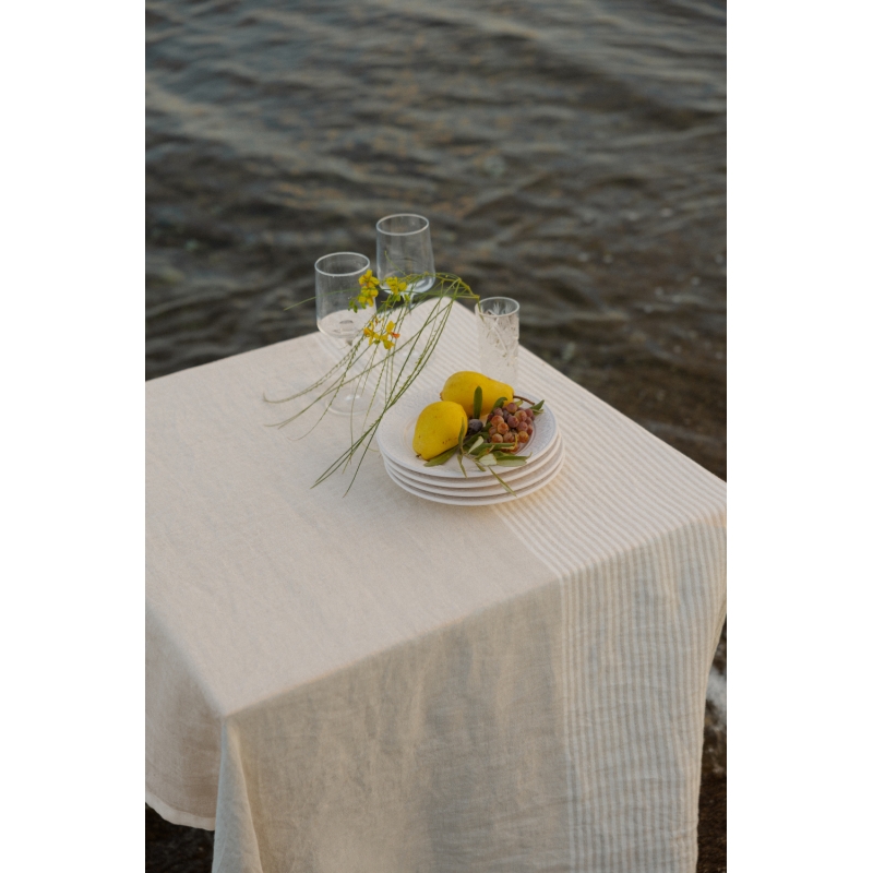 Prírodný ľanový odtieň s prúžkami vytvára nadčasový vzhľad, ktorý sa hodí ako do modernej domácnosti, tak na chalupu či letnú terasu. Vďaka ľahkosti materiálu je obrus Kaisla veľmi univerzálny – skvele funguje nielen na stole, ale aj ako ľahšia letná prikrývka alebo deka.