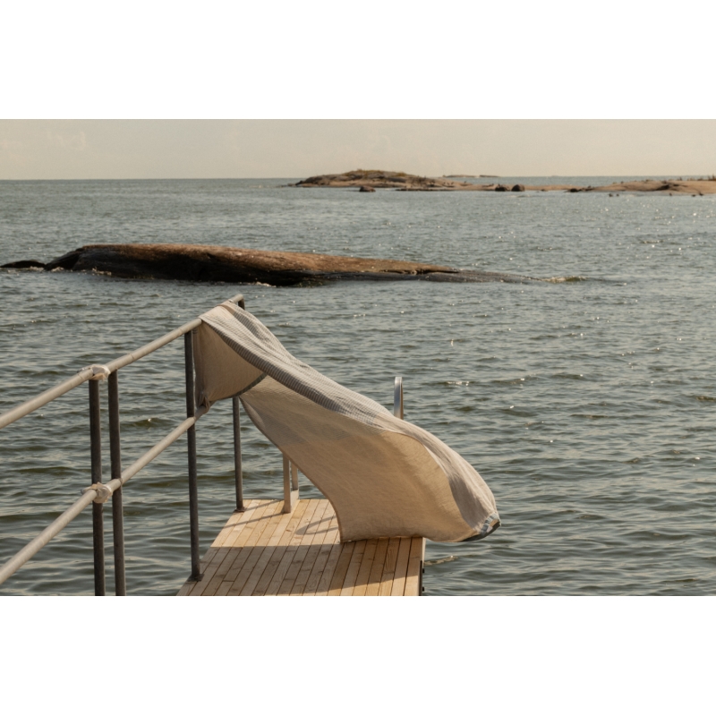 Obrus ​​Kaisla je svieži a ľahký obrus zo 100% praného ľanu s certifikáciou Masters of Linen, vyrobený vo Fínsku. Jemná štruktúra látky s úzkymi prúžkami pôsobí typicky pre severský dizajn prirodzene, pokojne a elegantne.