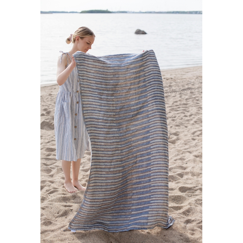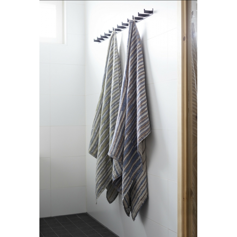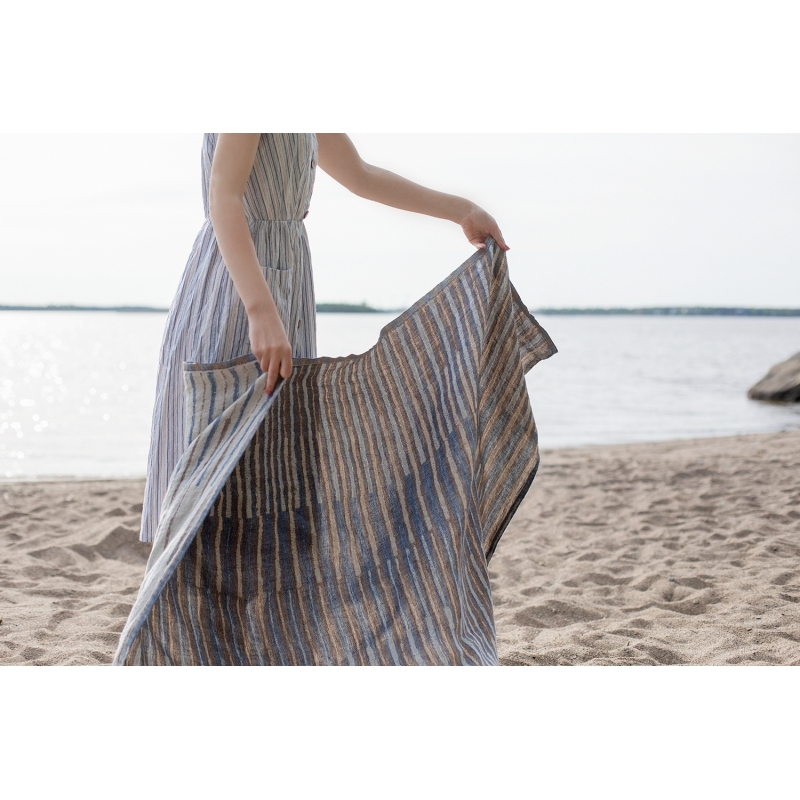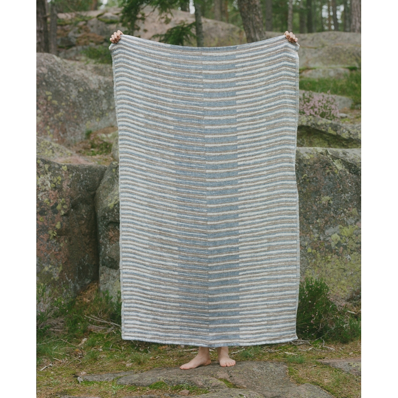 Kvalitný uterák tkaný zo 100% ľanu so vzorom Taito, ktorý navrhla dizajnérka Elisa Defossez Kikuchi. Nechala sa inšpirovať každodenným pozorovaním prírody, kde je neustály pohyb, menia sa farby a ročné obdobia. Ľan rýchlo schne a je príjemný na tele. Ľan rýchlo schne a je príjemný na telo. Veľkú osušku môžete použiť nielen v kúpeľni na osušenie, ale aj ako jednoduchý kilt omotaním okolo pása v saune a tiež výborne poslúži aj ako plážová osuška k moru.