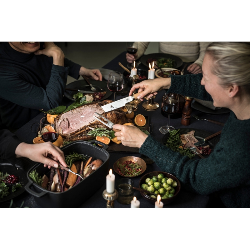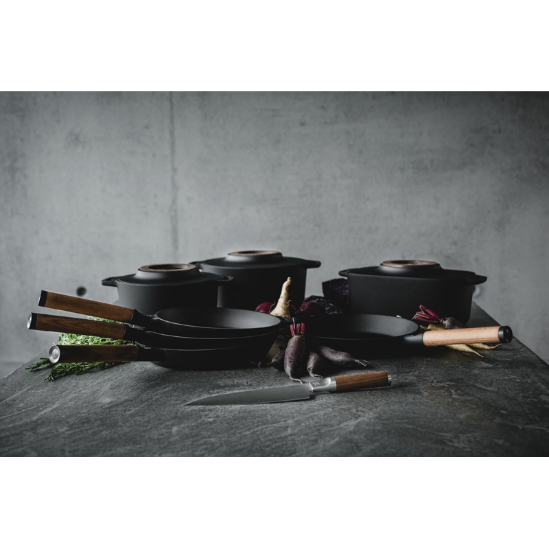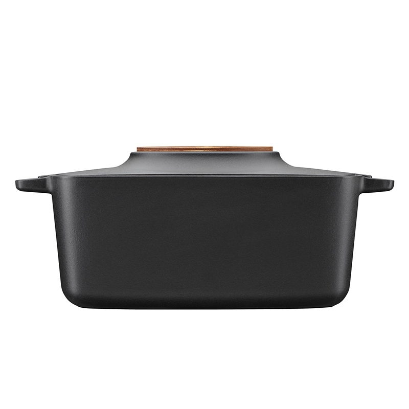 Robustný oválny liatinový hrniec Norden si vás získa nielen prvotriednou kvalitou a skvelými vlastnostmi pri varení a pečení, ale aj nadčasovým severským dizajnom. Typický dôraz na funkciu odráža praktické drevené koliesko, ktoré slúži ako podstavec pre odloženie horúceho hrnca. Masívna liatina zaručuje rovnomerné rozloženie tepla, či už budete v hrnci variť na sporáku alebo piecť v rúre. Liatina je chránená povrchovou úpravou Thermium™, ktorá zaručuje nepriľnavosť aj pri vysokých teplotách.