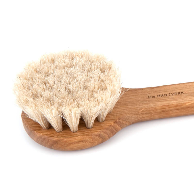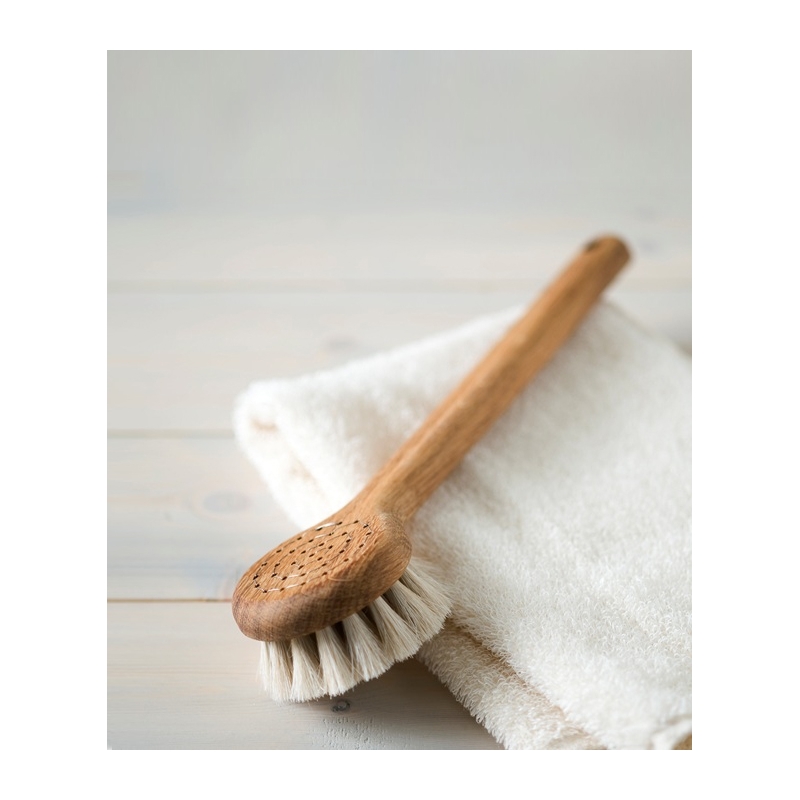 Masážna kefa krásne uvoľní a vyčistí vašu pokožku a vďaka rukoväti z masívneho dubového dreva dosiahnete aj na tie najmenej prístupné miesta na chrbte. Ideálna je na masírovanie pri kúpeli alebo saunovaní, kedy dovedie vašu relaxáciu k dokonalosti. Vlas kefy je zo šetrne získaných konských vlasov a má výbornú pevnosť a elasticitu.