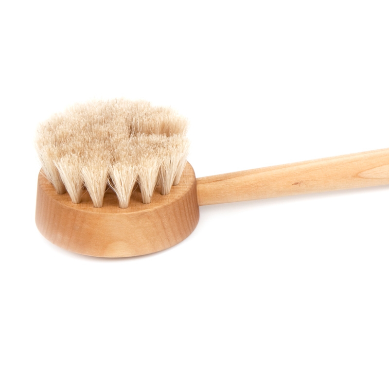 Masážna kefa krásne uvoľní a vyčistí vašu pokožku a vďaka extra dlhej rukoväti z masívneho brezového dreva dosiahnete aj na tie najmenej prístupné miesta na chrbte. Ideálna je na masírovanie pri kúpeli alebo saunovaní, kedy dovedie vašu relaxáciu k dokonalosti. Vlas kefy je zo šetrne získaných konských vlasov a má výbornú pevnosť a elasticitu.