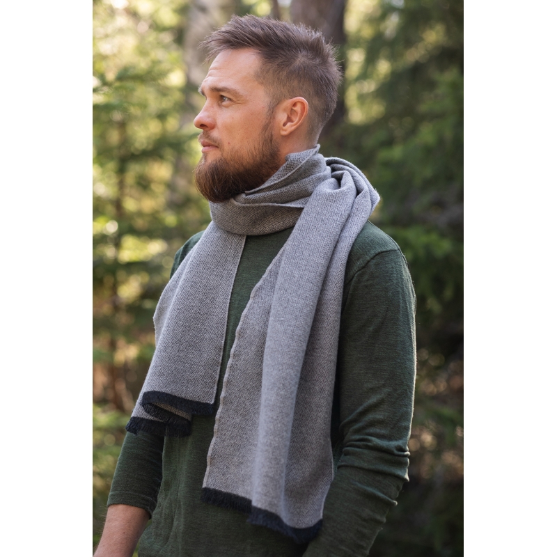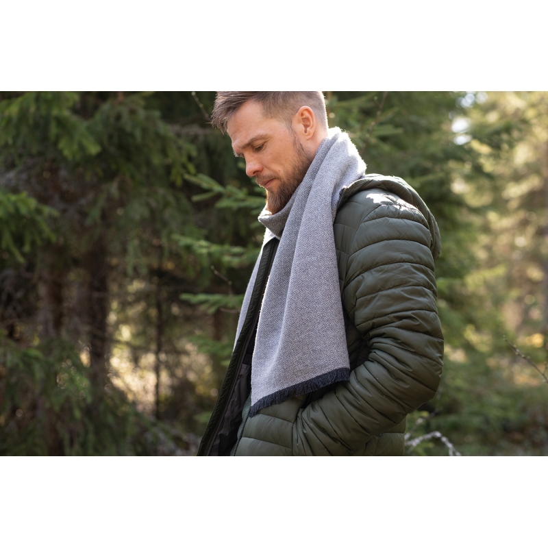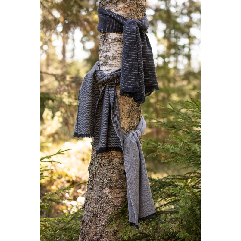 Exkluzívny šál Hanki je utkaný vo fínskej tkáčovni z prvotriednej merino vlny, ktorá je na dotyk neuveriteľne príjemná a zahreje vás vždy, keď bude potrebné. Šál má decentný tkaný vzor v neutrálnych odtieňoch šedej a na koncoch ho zdobia jemné krátke strapce.