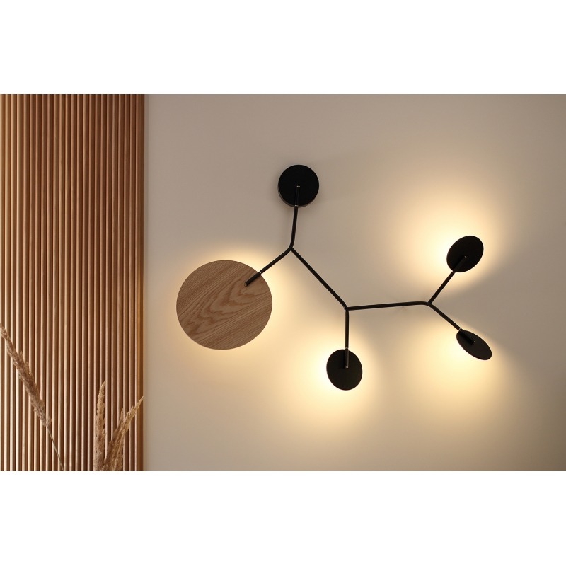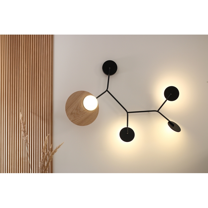 Táto lampa Wall5 má jeden z panelov podložený väčším diskom, ktorý môže mať dekór z kvalitného dubového alebo orechového dreva alebo čisto biely odtieň ako zvyšok svietidla. Pred vložením do košíka prosím vyberte požadovanú variantu.