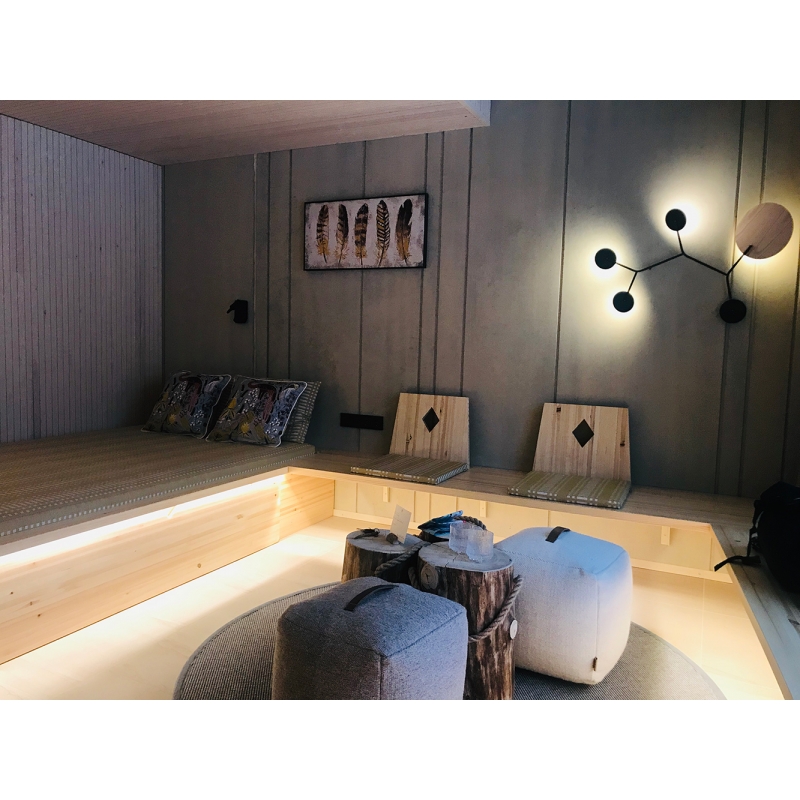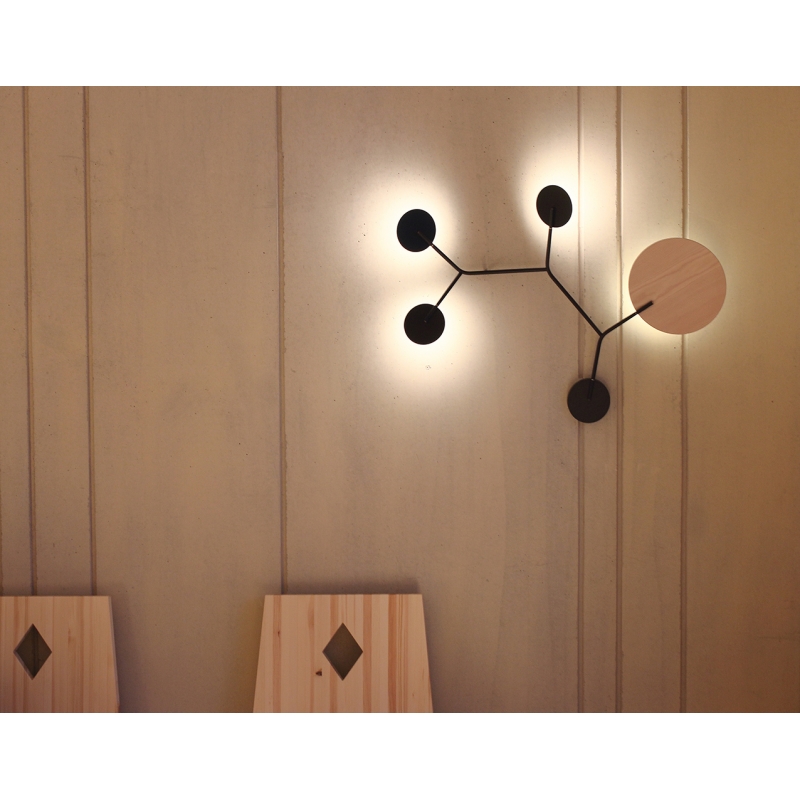 Táto lampa Wall5 má jeden z panelov podložený väčším diskom, ktorý môže mať dekór z kvalitného dubového alebo orechového dreva alebo čisto čierny odtieň ako zvyšok svietidla. Pred vložením do košíka prosím vyberte požadovanú variantu.