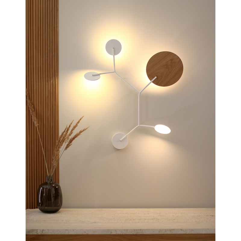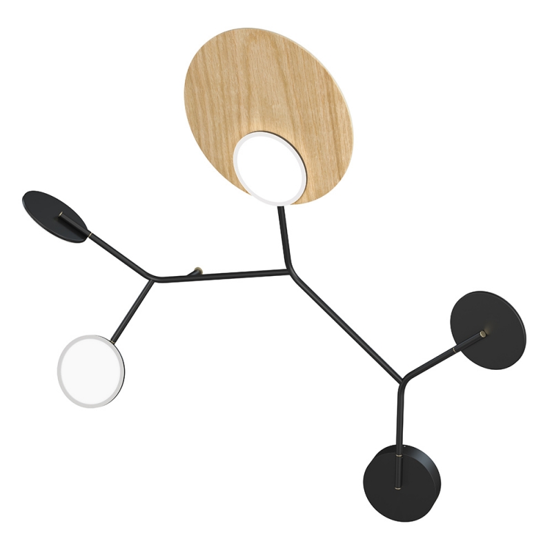 Táto lampa Wall5 má jeden z panelov podložený väčším diskom, ktorý môže mať dekór z kvalitného dubového alebo orechového dreva alebo čisto čierny odtieň ako zvyšok svietidla. Pred vložením do košíka prosím vyberte požadovanú variantu.