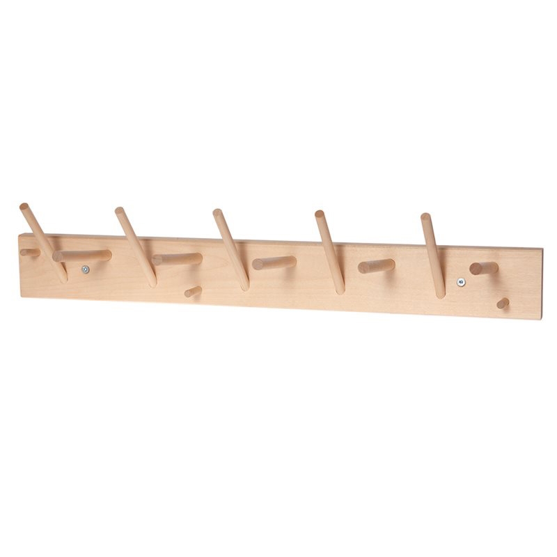 Univerzálny vešiak z masívneho brezového dreva má celkom 13 háčikov v troch veľkostiach a uhloch. Môžete naň zavesiť osušky, uteráky a žinky v kúpeľni a ideálny je tiež umiestnený pri dreze v kuchyni na kefy, utierky, doplnky a tiež sušenie roztriedeného odpadu.