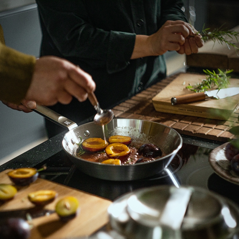 Robustná panvica Norden z nehrdzavejúcej ocele je dokonalou kombináciou tradičného remeselného spracovania a nadčasového fínskeho dizajnu. Hliníkové jadro medzi vonkajšou a vnútornou vrstvou z nehrdzavejúcej ocele zabezpečuje rovnomerný ohrev na všetkých typoch sporákov.