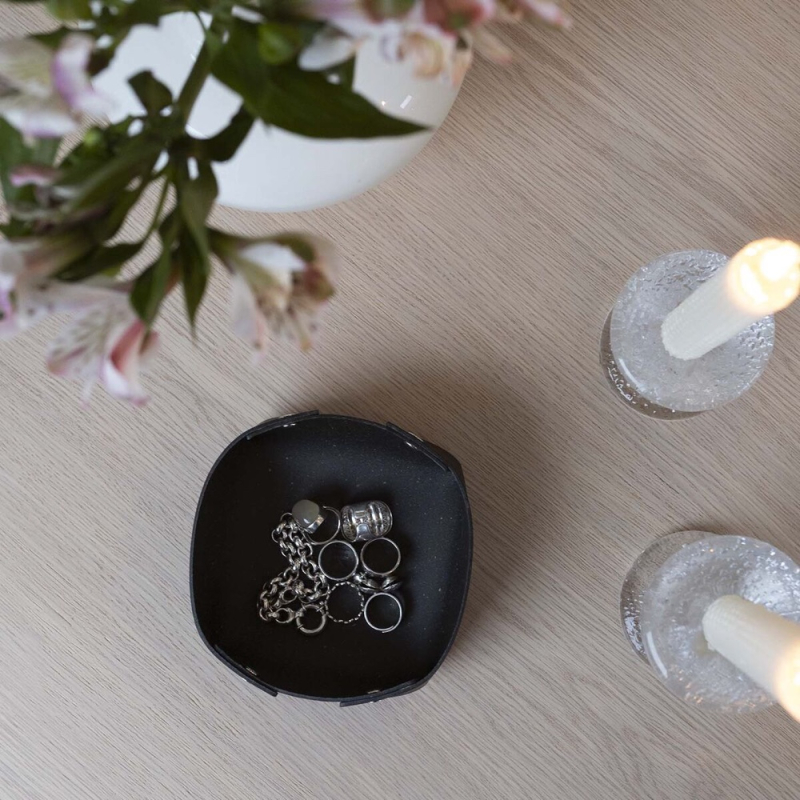 Odkladacia miska Rove z recyklovanej kože je elegantným riešením na ukladanie drobných nevyhnutností, ako sú kľúče, šperky, gumičky do vlasov alebo drobné pracovné potreby. Skvele poslúži aj ako nenápadná, ale praktická dekorácia na nočnom stolíku, v kúpeľni alebo na pracovnom stole. Miska sa vyrába priamo vo Fínsku a vyniká nadčasovým severským dizajnom.