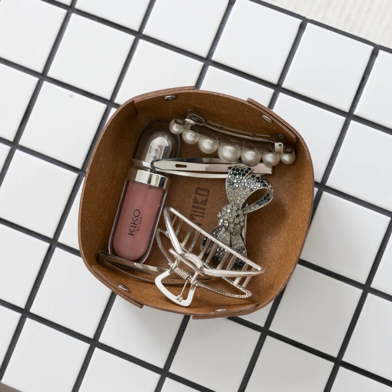 Odkladacia miska z pravej kože Rove, malá / hnedá