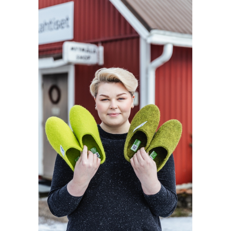 Každý pár vzniká ručne priamo vo Fínsku – tradícia značky Lahtiset siaha až do roku 1921. Dnes, rovnako ako vtedy, je každý kus vyrobený so starostlivosťou a rešpektom k tradícii. Vlnená ovčia plsť je prírodný, ľahký, priedušný a k životnému prostrediu priateľský materiál.