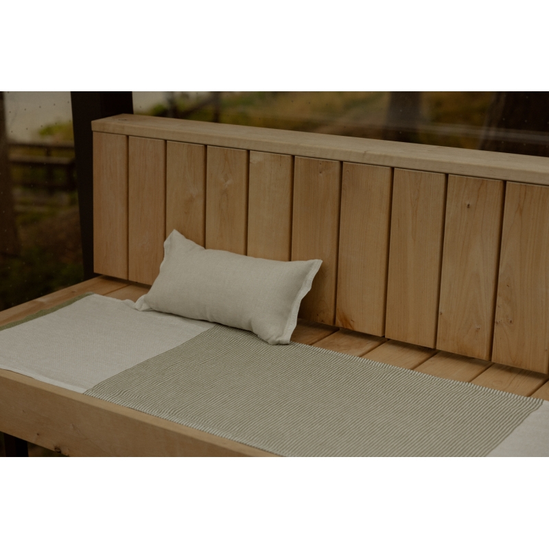 Podložka je navrhnutá tak, aby poskytla komfort pri sedení aj ležaní a zároveň chránila lavicu pred potom. Ľan je na dotyk príjemne chladivý, čo v horúcom prostredí sauny oceníte, a s každým praním navyše mäkne a získava na charaktere.