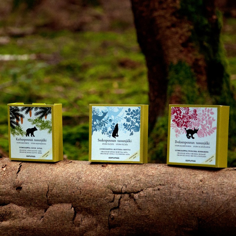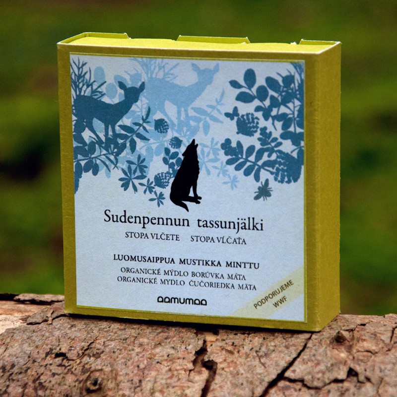 Prírodné mydlo zo surovín panenskej fínskej prírody s autentickým otlačkom stopy vlčieho mláďaťa zavedie vaše myšlienky ďaleko do hlbokého lesa. Úžasný darček s myšlienkou, ktorý navyše pomáha chrániť prírodu. Mydlo je uhniezdené v darčekovej krabičke vyrobenej z recyklovaných materiálov a jeho povznášajúca vôňa čučoriedok a mäty na vás dýchne hneď pri otvorení. Čučoriedkový olej a sušené čučoriedky bohaté na antioxidanty a vitamíny vám doprajú pocit uvoľnenia a relaxácie, takže sa po kúpeli budete cítiť ako znovuzrodení.
