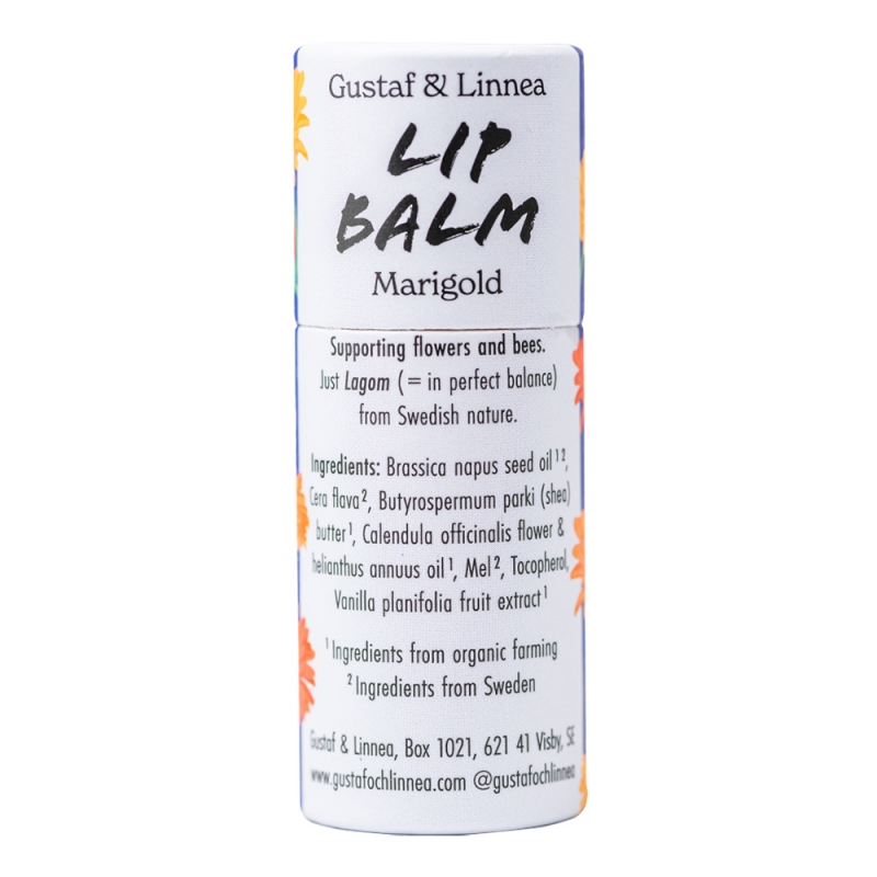 Balzam je balený do odolnej ak prírode šetrnejšej papierovej tuby s krásnym motívom nechtíkov. Navyše je dvojnásobne väčší ako bežný balzam, takže sa ľahko aplikuje aj na väčšie plochy pokožky. Každý kus je ručne vyrobený s láskou a starostlivosťou na ostrove Gotland malou rodinnou firmou, ktorá žije udržateľne as rešpektom k prírode a obstaráva vlastné včelstvá.
