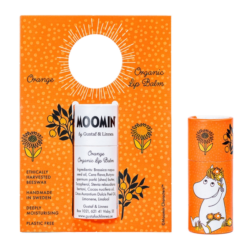 Prírodný balzam na pery s motívom Snorkmaiden z obľúbených rozprávok o Muminkoch je vyrobený vo švédskej manufaktúre Gustaf och Linnea a spája jemnú starostlivosť o pokožku s udržateľným prístupom k prírode.