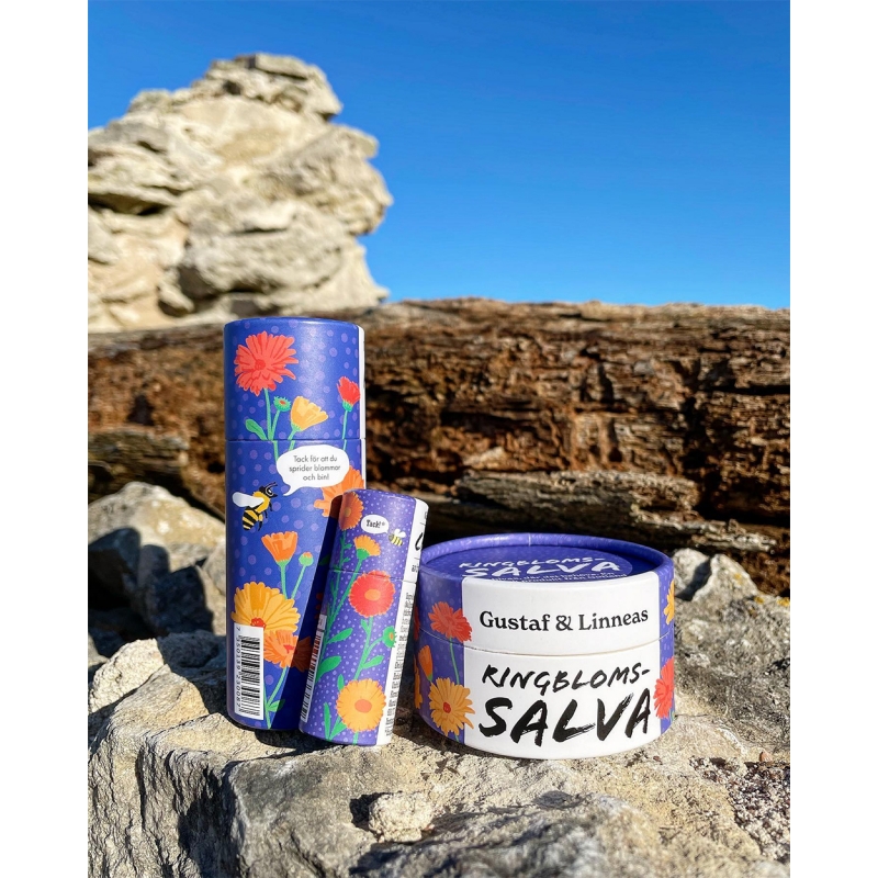 Balzam je balený do odolnej ak prírode šetrnejšej papierovej tuby s krásnym motívom nechtíkov. Každý kus je ručne vyrobený s láskou a starostlivosťou na ostrove Gotland malou rodinnou firmou, ktorá žije udržateľne as rešpektom k prírode a obstaráva vlastné včelstvá.