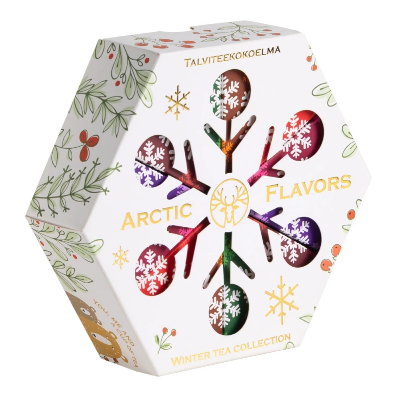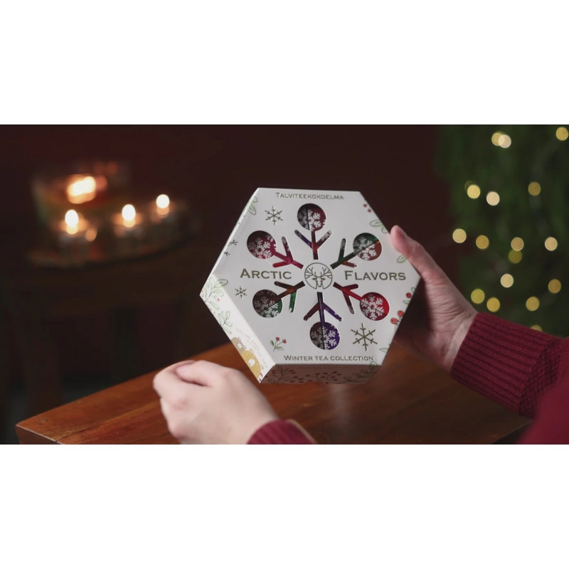 Doprajte si kúzlo fínskej zimy s čajovou kolekciou Nordqvist Arctic Flavors, ktorá prináša šesť jedinečných zimných čajov v elegantnom darčekovom balení. Každý dielik vo veľkej krabičke obsahuje dve vrecká čaju, takže si chvíľu pohody môžete vychutnať s niekým blízkym.