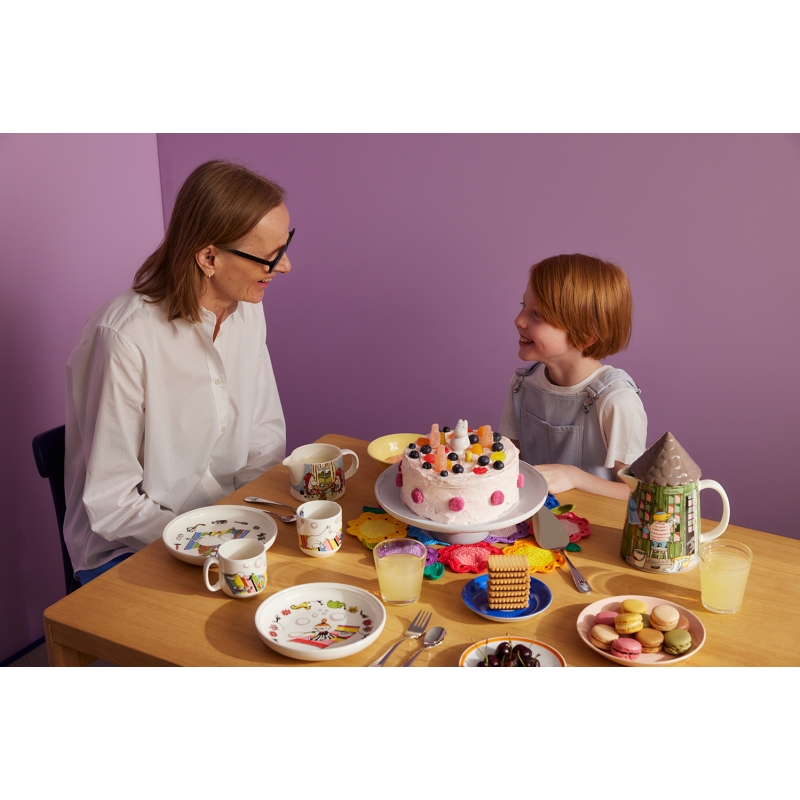 Milý set detského hrnčeka a taniera na motívy príbehov z kúzelného údolia od slávnej fínskej autorky Tove Jansson. Muminek v podkroví nachádza poklady z oteckových vzrušujúcich dobrodružstiev. Ideálnu veľkosť a tvar klasického detského riadu navrhol Richard Lind. Set v peknom darčekovom boxe bude originálnym darčekom.