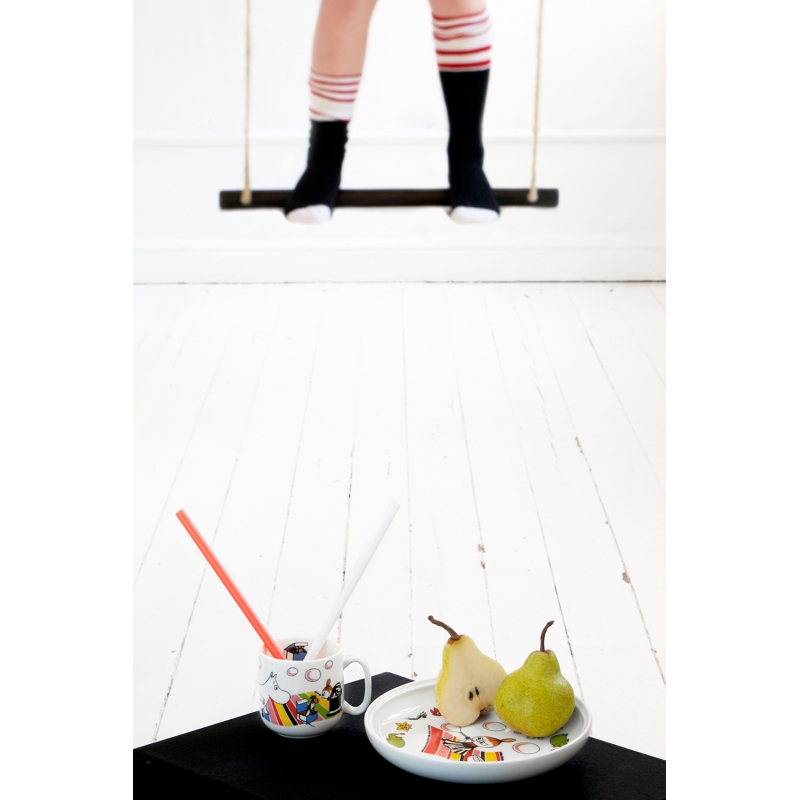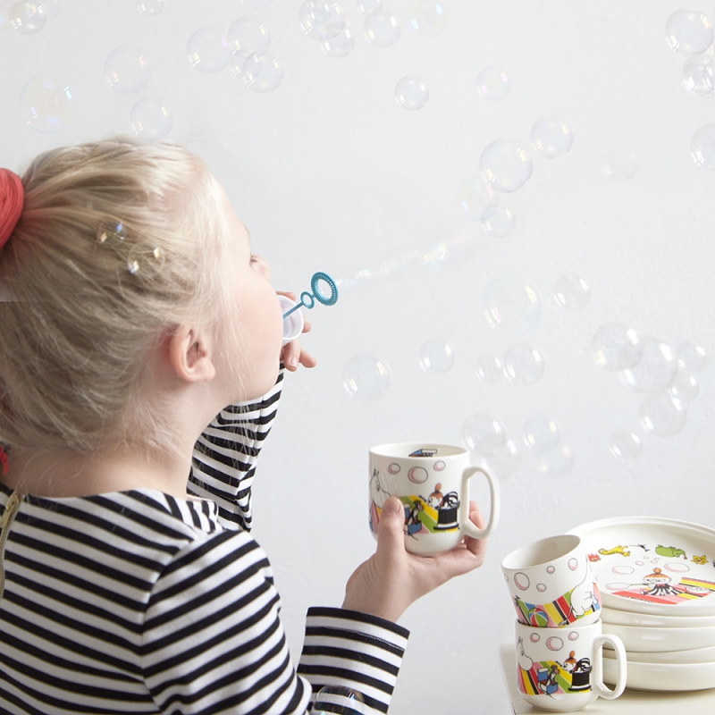 Milý set detského hrnčeka a taniera na motívy príbehov z kúzelného údolia od slávnej fínskej autorky Tove Jansson. Zo zoo ušli zvieratá a zatiaľ čo ich Muminci skrývajú, Little My sa sústredí na fúkanie mydlových bublín. Ideálnu veľkosť a tvar klasického detského riadu navrhol Richard Lind. Set v peknom darčekovom boxe bude originálnym darčekom.