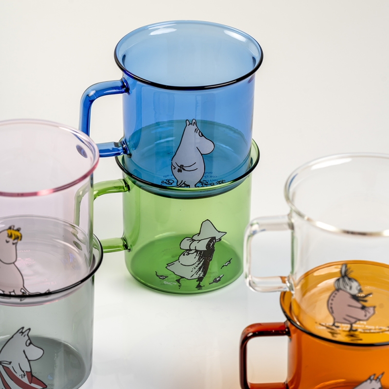 Sklenený hrnček na motívy rozprávkových Mumínkov od slávnej fínskej autorky Tove Jansson z borosilikátového skla je ľahký a odolný. Hrnček vydrží ľadovo studené aj horúce nápoje a môžete si tak z neho vychutnávať horúci čaj, kávu, varené víno alebo napríklad ľadovo vychladenú limonádu.