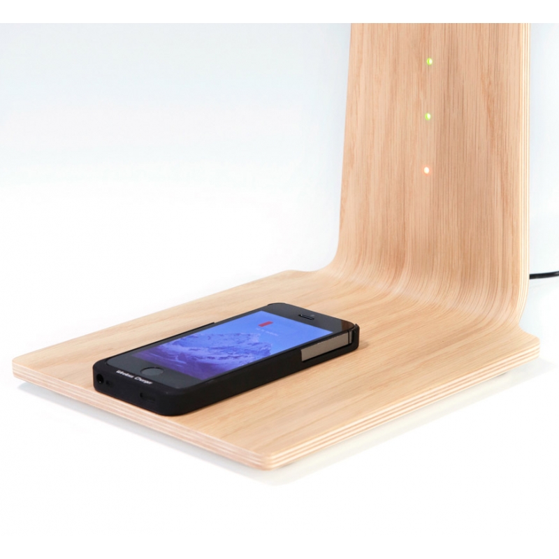Táto verzia stolnej lampy LED8 je vybavená bezkonktantnou nabíjacou technológiou Qi pre mobilné telefóny (Qi 1.0 standard). Stačí telefón podporujúci túto technológiu jednoducho položiť na základňu lampy a ten sa začne nabíjať.