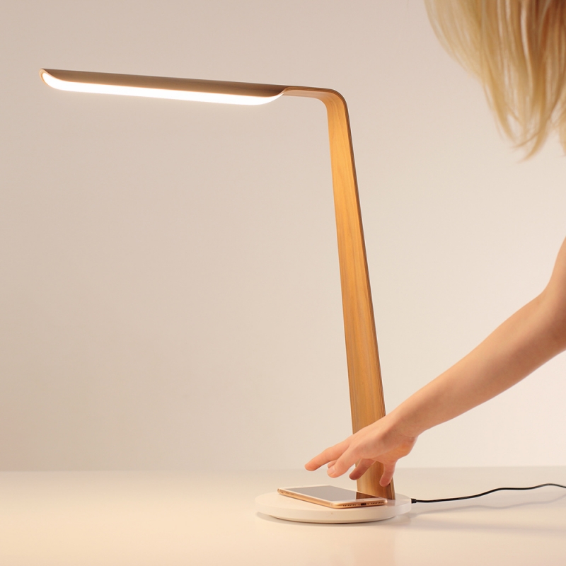 Jemné krivky stolnej lampy Swan Qi pripomínajú elegantný dlhý štíhly krk majestátnych labutí. Krásna lampa na pracovný stôl od Tunto je majstrovským dielom, ktorý podčiarkuje filozofiu tejto fínskej značky. Qi verzia umožňuje bezkontaktné nabíjanie mobilných zariadení pomocou technológie Qi Wireless charging  (Qi 1.0 Standard).