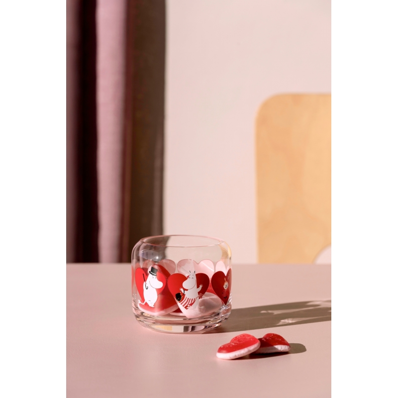 Čarovný sklenený svietnik s motívom Muminkov a srdiečok vnesie do vášho domova teplo a lásku. Plamienok sviečky rozžiaria jemné ilustrácie a vytvoria útulnú atmosféru, ktorú si zamilujete.