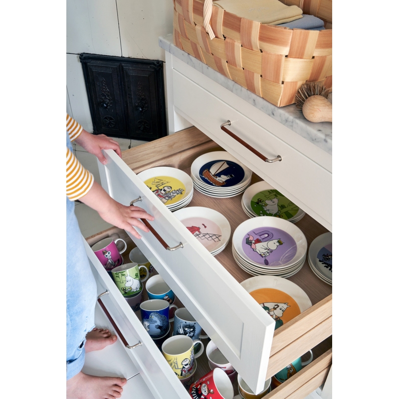 Fínska ilustrátorka a spisovateľka Tove Jansson pripravila pre deti po celom svete dobrodružné a zároveň poučné príbehy o Muminkoch, ktoré ich sprevádzajú po celý život. Jej rozprávkové knihy sú plné unikátnych kresieb postavičiek z čarovného údolia, ktoré sa stali základom pre ikonický porcelán Arabia, poháre Iittala a smaltované hrnčeky Muurla. Motívy Muminka, jeho rodinky a priateľov nám tak môžu robiť radosť každý deň, aj keď už zrovna nie sme deti.