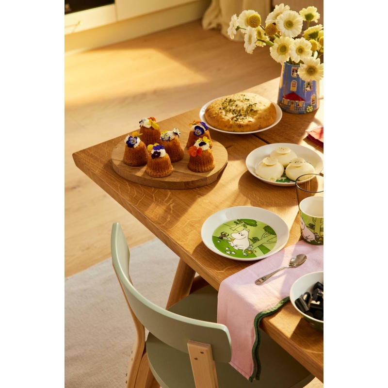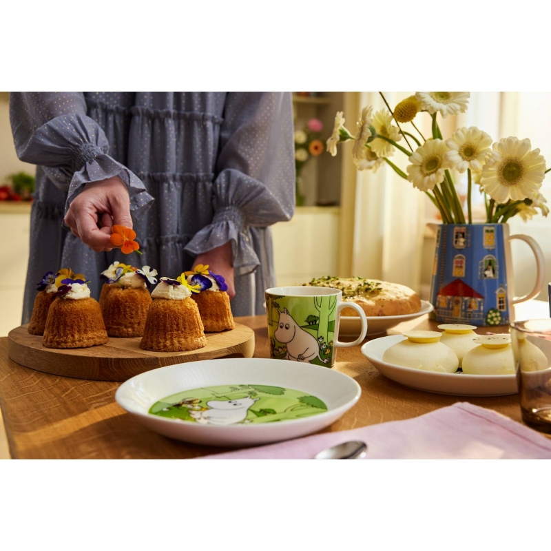 Fínska ilustrátorka a spisovateľka Tove Jansson pripravila pre deti po celom svete dobrodružné a zároveň poučné príbehy o Muminkoch, ktoré ich sprevádzajú po celý život. Jej rozprávkové knihy sú plné unikátnych kresieb postavičiek z čarovného údolia, ktoré sa stali základom pre ikonický porcelán Arabia, poháre Iittala a smaltované hrnčeky Muurla. Motívy Muminka, jeho rodinky a priateľov nám tak môžu robiť radosť každý deň, aj keď už zrovna nie sme deti.