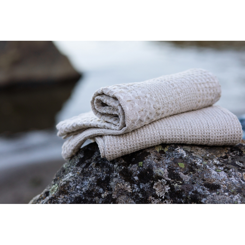 Uterák Kuohu je utkaný vo Fínsku z čisto prírodných materiálov - ľanu zozbieraného v Normandii, tencle z celulózových vlákien z Rakúska a bavlny. Výsledkom je mäkký uterák s výbornou savosťou, ktorý rýchlo schne.