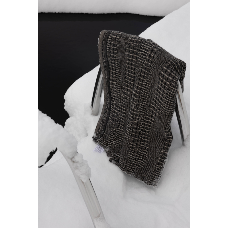 Objavte jedinečný dizajn uteráka Kuohu v tmavo sivom odtieni od talentovanej dizajnérky Maëlis Ray. Je inšpirovaný prúdom vody, vlnami a jemnou textúrou morskej peny, ktoré sa stali podkladom pre rôzne techniky tkania.
