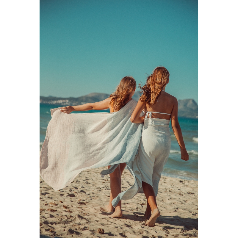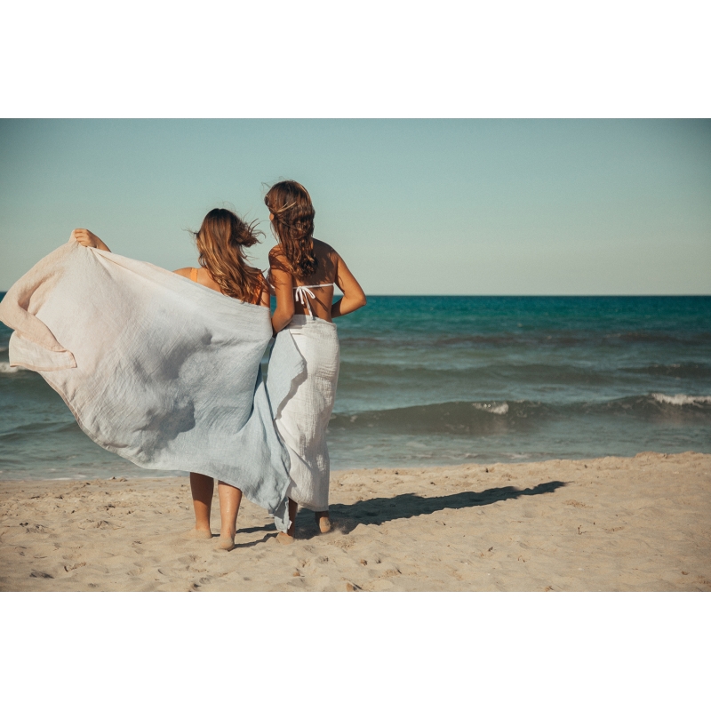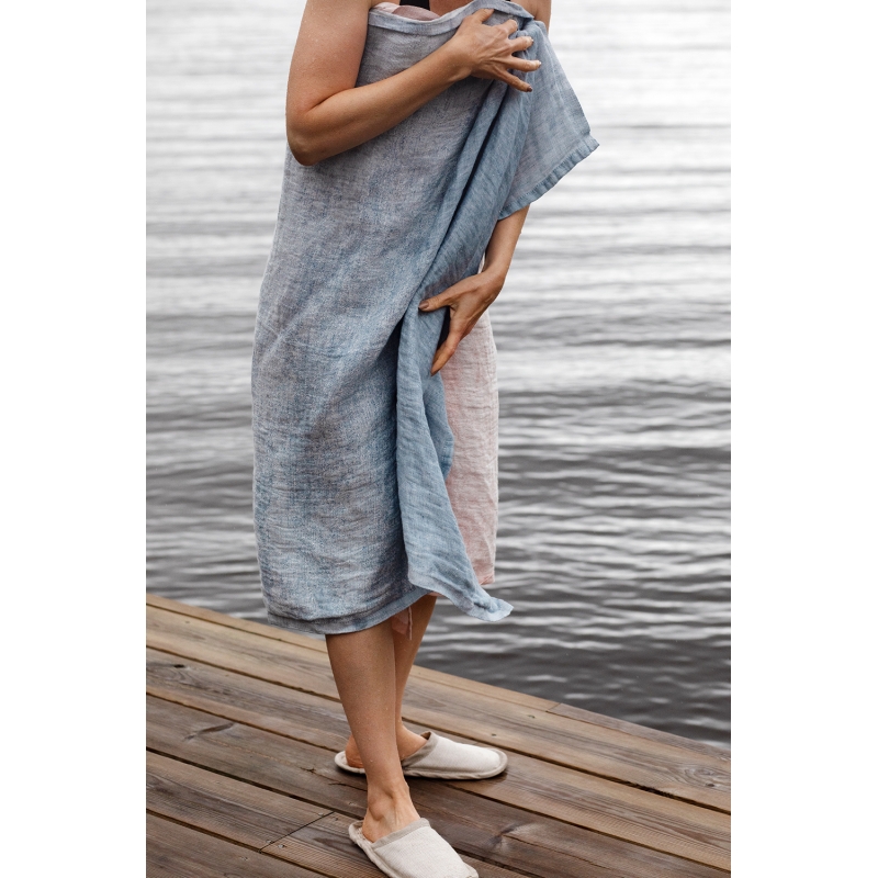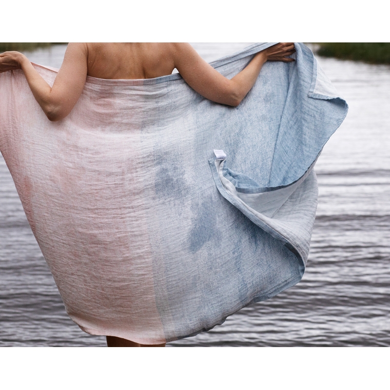 Ľanový uterák Saari postupne prechádza z jemnej ružovej do tmavo modrej. Pre Lapuan Kankurit tento krásny motív navrhla japonská dizajnérka Aoi Yoshizawa žijúci vo Fínsku. Veľkú osušku môžete použiť nielen v kúpeľni na osušenie, ale aj ako jednoduchý kilt omotaním okolo pása v saune a tiež výborne poslúži aj ako plážová osuška k moru.