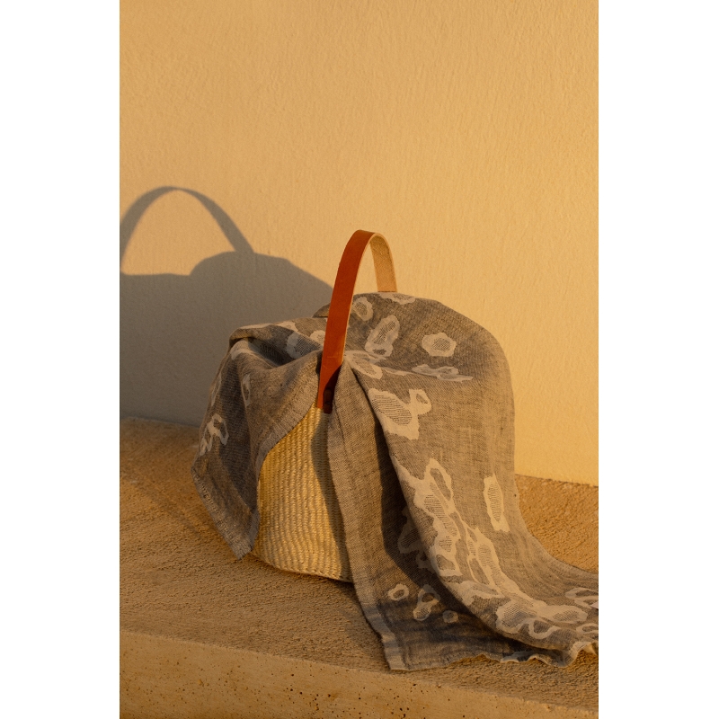 Uterák je tkaný zo 100% ľanu s motívom inšpirovaným srsťou tuleňov krúžkovaných. Ľan rýchlo schne a je príjemný na telo. Veľkú osušku môžete použiť nielen v kúpeľni na osušenie, ale aj ako jednoduchý kilt omotaním okolo pása v saune a tiež výborne poslúži aj ako plážová osuška k moru.