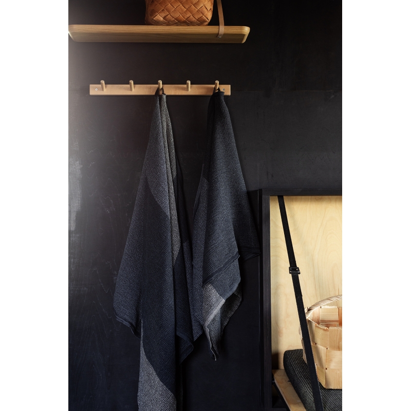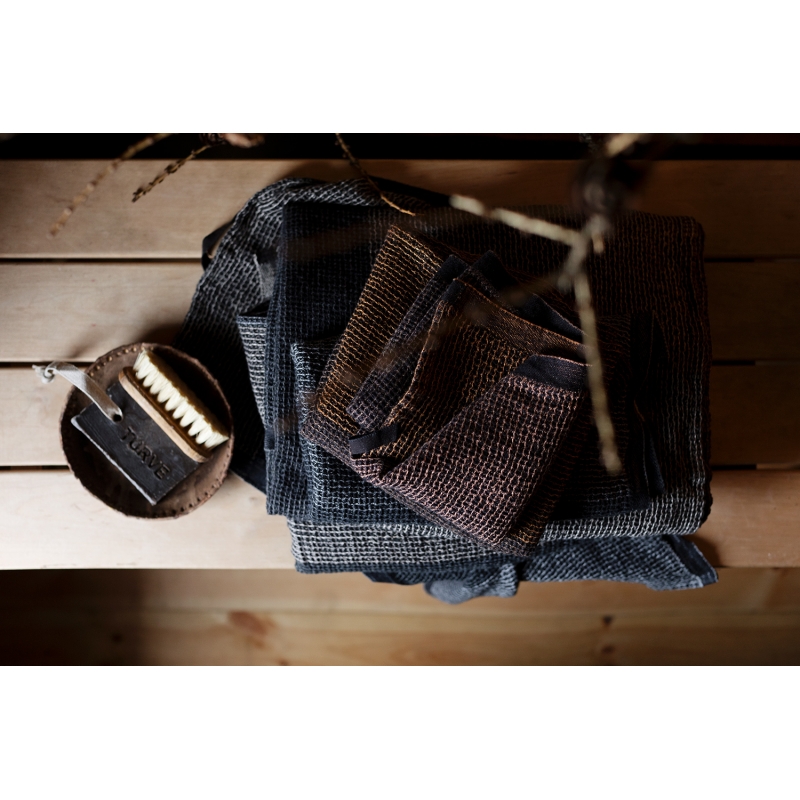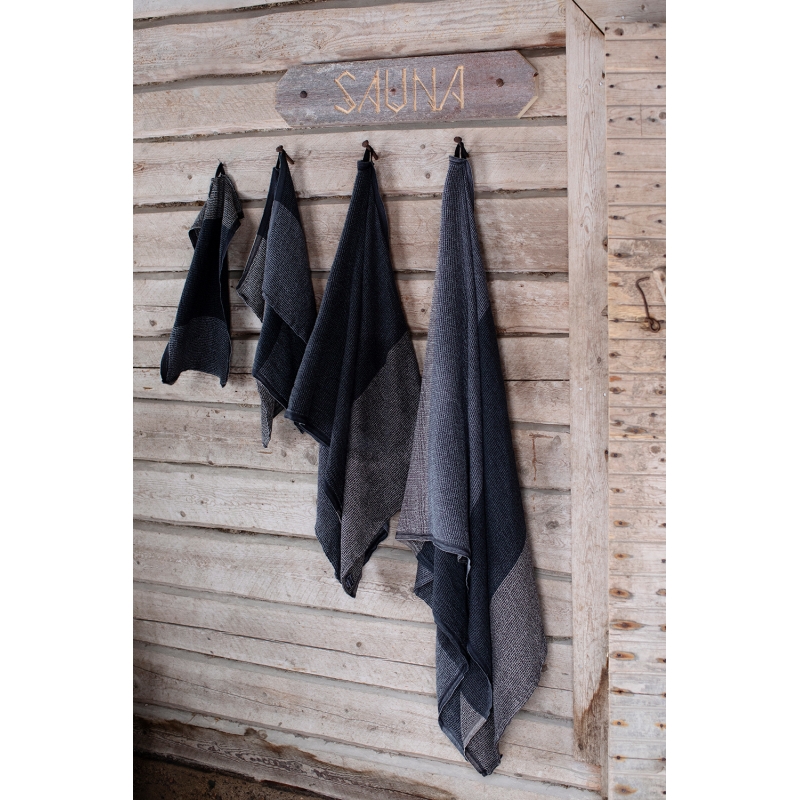 Zloženie z ľanu, tenclu a bavlny radí uterák Terva medzi obľúbených pomocníkov vo vašej kúpeľni, keďže je na dotyk jemnejší, rýchlo schne a má vynikajúcu savosť. Uterák Terva si jednoducho zamilujete hneď pri prvom použití. Hodí sa nielen ako klasická osuška, ale poslúži aj ako štýlový kilt v saune. Táto farebná kombinácia je tkaná z nití v čiernom, šedom a prírodnom odtieni ľanu.