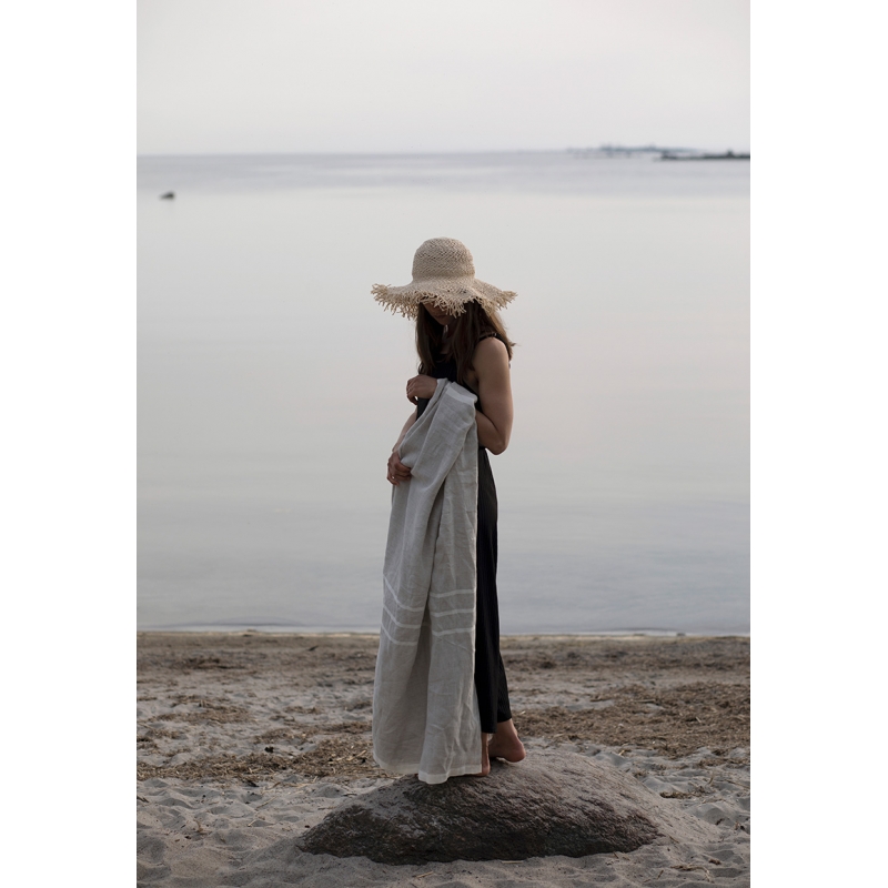 Uterák Usva je tkaný zo 100% ľanu a vďaka prírodnému odtieňu pôsobí už na prvý pohľad harmonicky. Ľan rýchlo schne a je príjemný na telo, takže veľkú osušku môžete použiť nielen v kúpeľni na osušenie, ale aj ako jednoduchý kilt v saune. Výborne poslúži aj ako plážová osuška k moru.