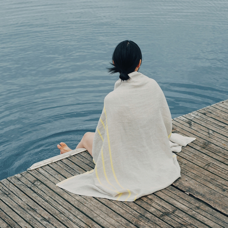 Uterák Usva je tkaný zo 100% ľanu a vďaka prírodnému odtieňu pôsobí už na prvý pohľad harmonicky. Ľan rýchlo schne a je príjemný na telo, takže veľkú osušku môžete použiť nielen v kúpeľni na osušenie, ale aj ako jednoduchý kilt v saune. Výborne poslúži aj ako plážová osuška k moru.