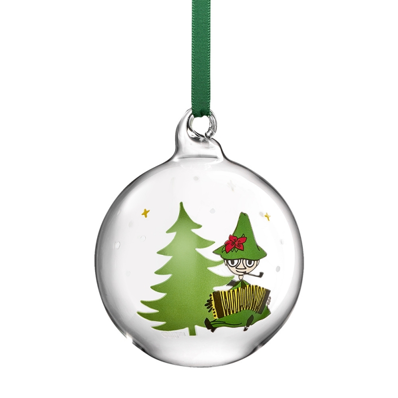 Sklenená vianočná ozdoba nesie milý motív Muminka, Snorkmaiden a Snufkina a smreku v pozadí od slávnej fínskej autorky Tove Jansson. Ozdobte si domov štipkou vianočného kúzla z údolia Muminkov! Ozdoba je ideálna na zavesenie na vianočný stromček alebo na vetvičku vo váze. Vyrobené ručne a balené v krásnej darčekovej krabičke.