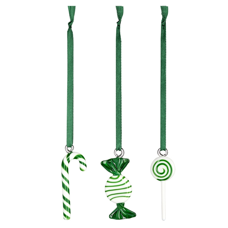 Set sklenených vianočných ozdôb v tvaroch obľúbených sviatočných sladkostí krásne doplní vianočný stromček, vetvičku vo váze alebo pokojne aj samotné vianočné darčeky. Balenie obsahuje 3 ozdoby.