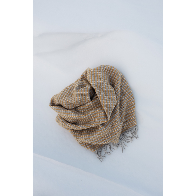Vlnená deka Havas od dizajnérky Hety Vajavaara v sebe spája tradíciu a hravosť. Vychádza z klasickej tkáčskej štruktúry, ktorú Heta objavila vo svojej osobnej knižnici väzieb, a oživila ju rytmickým geometrickým vzorom. Kombináciou rôzne farebných priadzí a ich zoskupením vzniká živý motív, ktorý púta pozornosť, no zároveň neruší pokoj interiéru. Vlnené vlákno tejto deky je farbené rastlinným farbivom získaným z kávy pochádzajúcej z prebytkov z fínskej pražiarne Paulig.