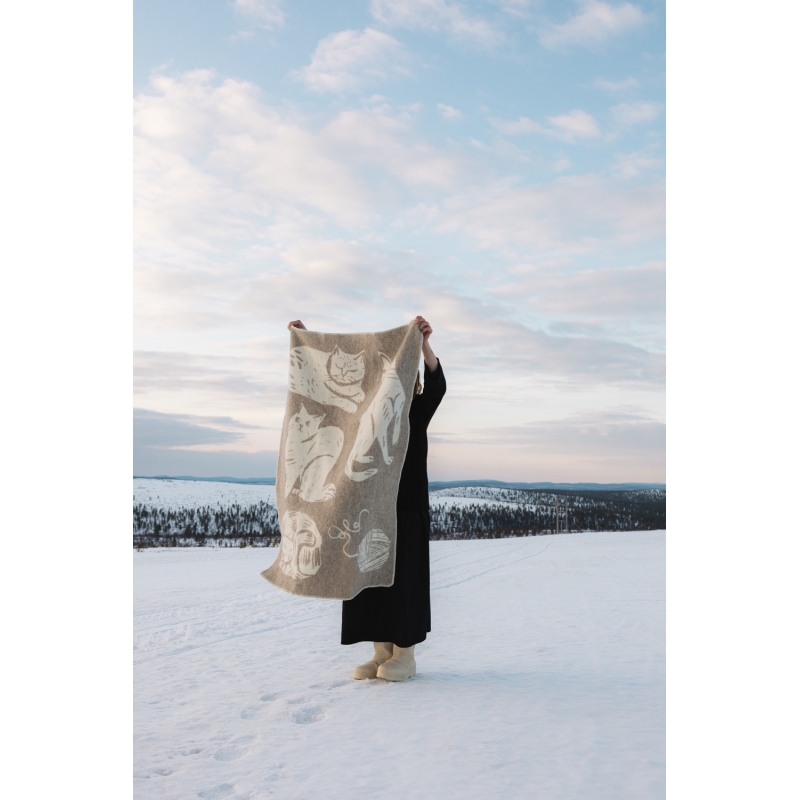 Kvalitná menšia deka Kissanpäivät (vo fínčine mačacie dni) zo 100% čistej strižnej vlny s hravým motívom mačiek, ktoré si patrične užívajú svoj deň. Deka poteší každého milovníka mačiek, ktorý sa do nej rád zababuší a môžete s ňou treba tiež vystlať mačacie pelech. Z jednej strany je deka tmavá so svetlou kresbou, na druhej je naopak svetlý podklad a kresba tmavá.